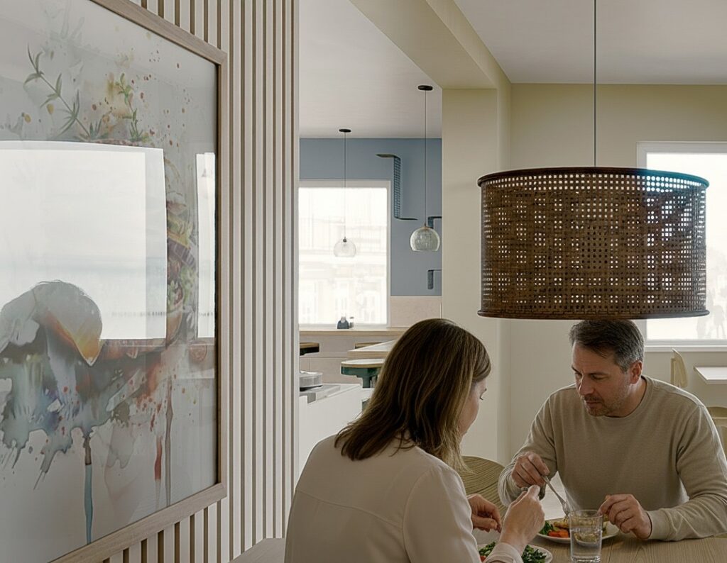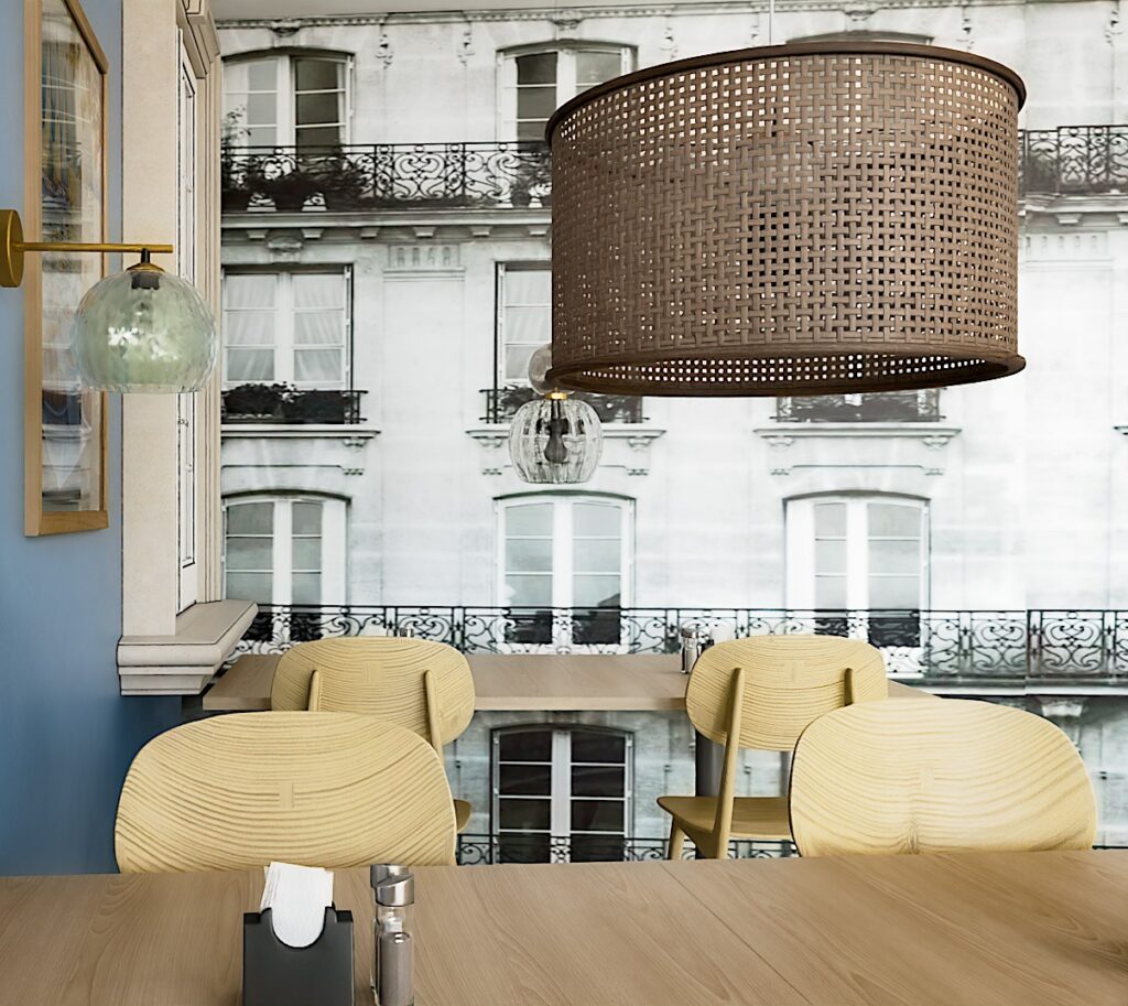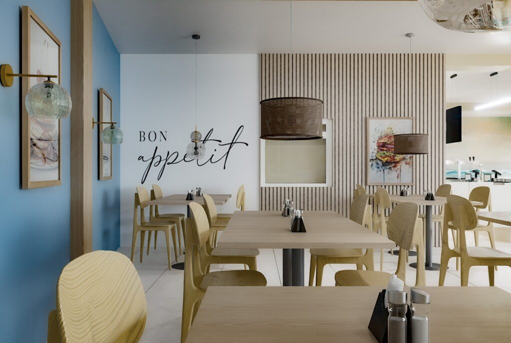 Styl skandynawski w restauracji Domku Smaków w Mielnie podkreśla nowoczesny charakter lokalu, jednocześnie zachowując jego wakacyjny, nadmorski klimat. Wizualizacje pokazują, jak przemyślany projekt wnętrza restauracji może odświeżyć znane miejsce i nadać mu spójną, atrakcyjną tożsamość.
